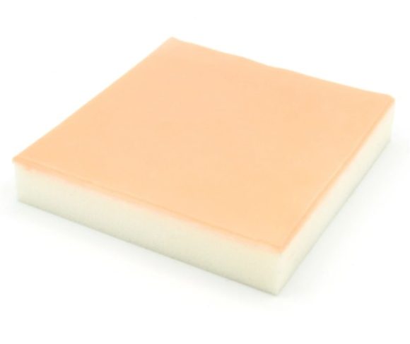 The two-layer injection pad allows lifelike lifting of a skin fold – ideal for realistic practice of subcutaneous injections. The pad is reusable, tear-resistant, and maintains its shape and texture even after frequent use.