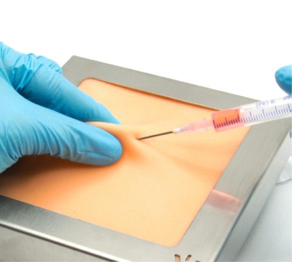 This injection pad allows you to practice subcutaneous injections in a lifelike manner.