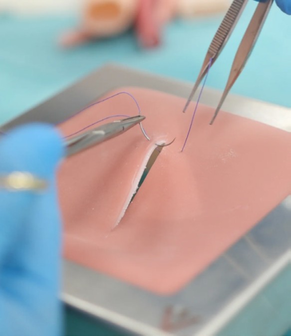 This two-layered suture pad allows for lifelike training of the surgical closure of internal hollow organs.